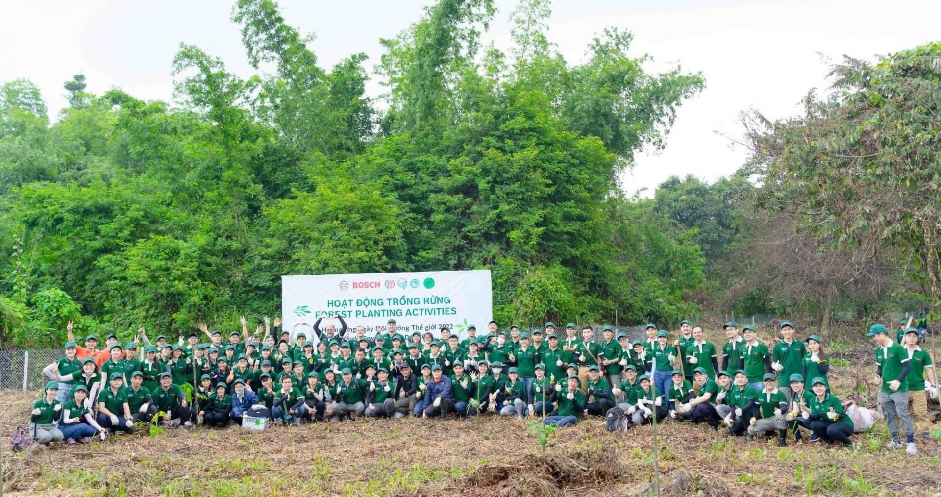 In 2023, Bosch Vietnam organized over 20 Corporate Social Responsibility (CSR) initiatives, dedicating 3,000 hours and donating 9 billion VND to various projects. They focus on sustainability, education, and community welfare from providing education to underprivileged children, planting 500 trees over 5 hectares in Dong Nai, developing school infrastructure, and supplying essentials to orphanages across different locations.