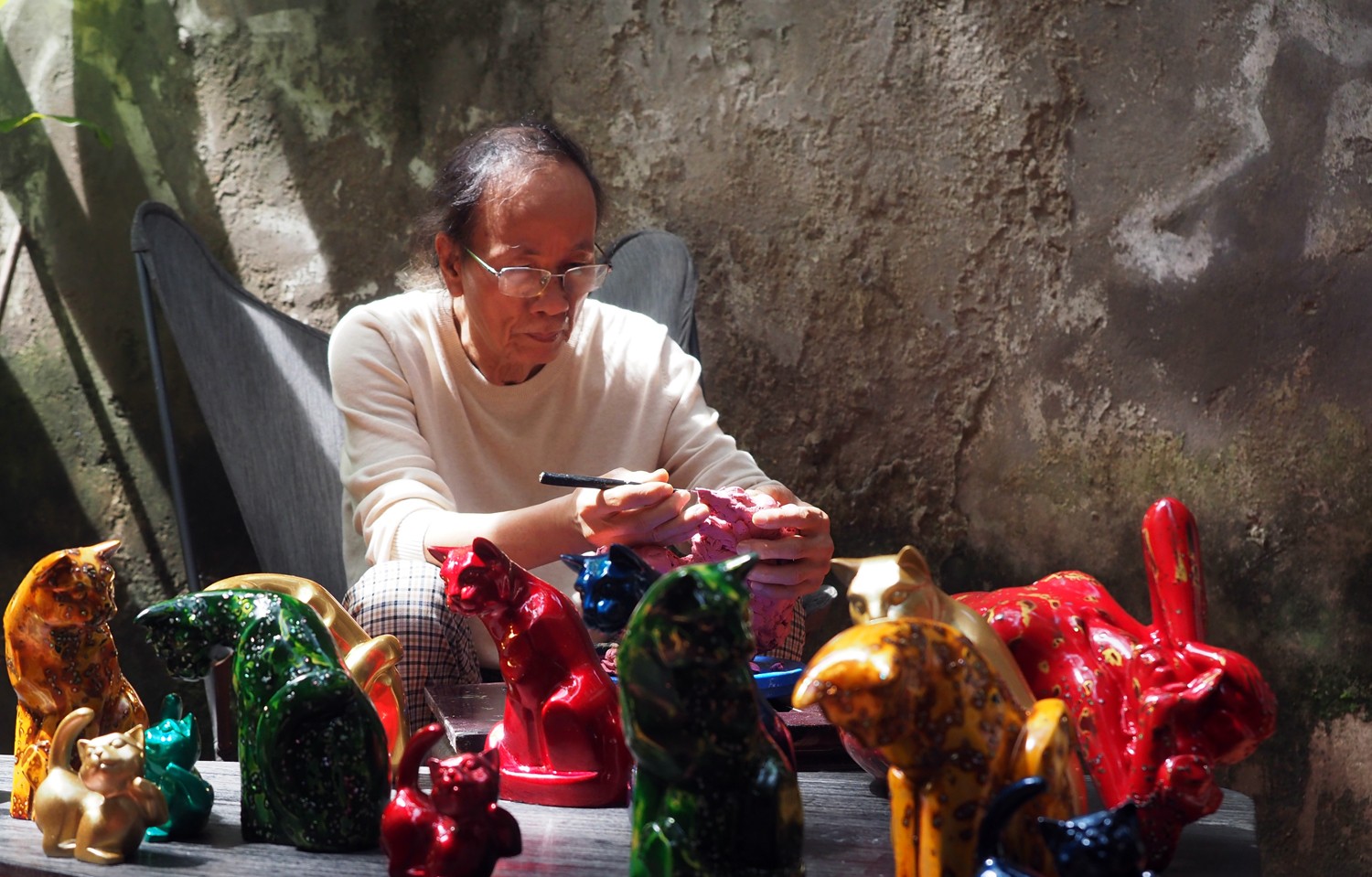 Vu Dung said cats are close friends of humans. While sculpturing the “Cat family”, he tried to make the cats as lively as possible, with papa cat featuring strength, determination and firmness, mama cat displaying tenderness, and the kitten with an agile and playful appearance.