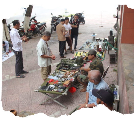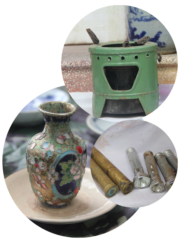 Nostalgic people can find many old items, recalling a difficult time in the country, such as bicycle parts, watches, flashlights, oil lamps and war keepsakes. Not only people in Nghe An Province but also visitors from the neighboring province of Ha Tinh and other provinces come to the weekend market to find old and antique items. |