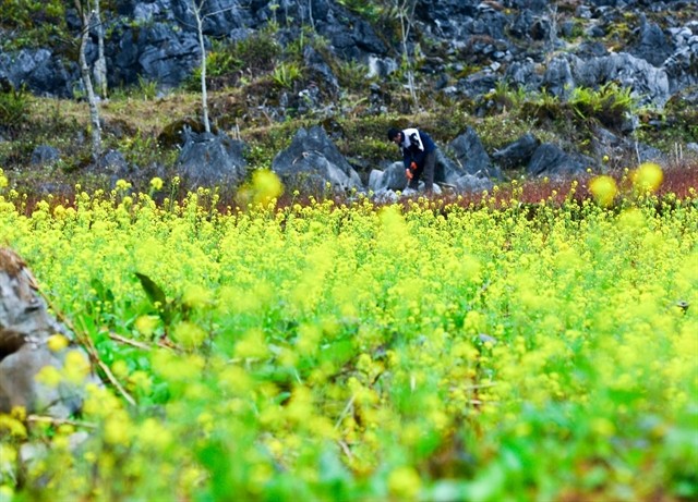 These days, Hà Giang is carpeted by endless fields of mustard blossoms which bring a warm atmosphere to clear away the cold air and grey sky in the region while welcoming a prosperous spring.