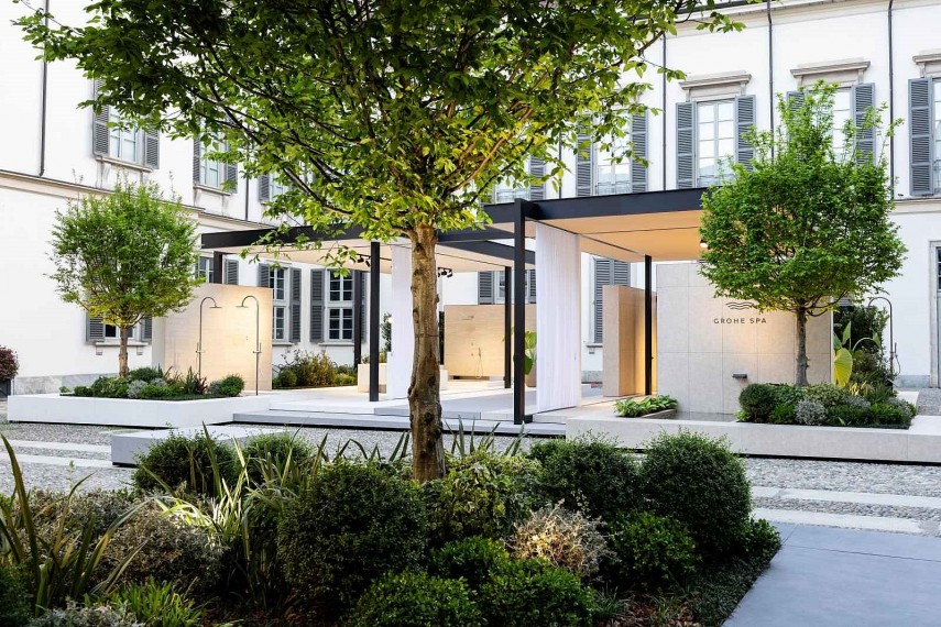 Based on the concept of “Aquatecture” – the fusion of water and architecture – the GROHE SPA installation in the courtyard of Palazzo Reale unveils a series of spaces that elevate the significance and importance of water in architecture, and the health and well-being benefits this infusion brings. Conceived by the in-house LIXIL Global Design and Brand Identity team, the “Aquatecture” installation pays tribute to the history of the building, interwoven with the contemporary GROHE SPA “Salus per aquam” concept. Inspired by the former courtyard garden and in synergy with Milan Design Week’s theme “Materia Natura”, it thoughtfully blends nature and architecture to create immersive spaces that reflect the essence of GROHE SPA. These carefully curated spaces echo the former garden, creating sensual areas to reflect, revitalize, and energize.
