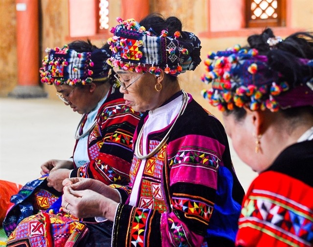 | STITCH IN TIME: Lô Lô women often spend their free time together embroidering and chatting. — VNA/VNS Photo Nam Thái |