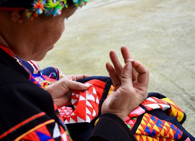 | HANDY SKILLS: The Lô Lô people traditionally embroider their brocade by hand. Embroidery is an art form that calls for careful consideration and precise execution to achieve a stunning final product. VNA/VNS Photo Nam Thái |