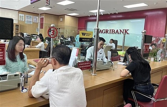 | Customers deposit money at an Agribank branch in HCM City. (Photo: VNA) |