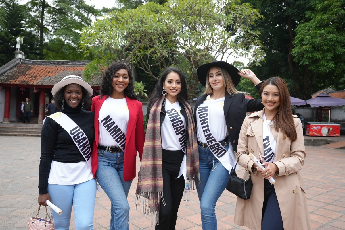 In Hanoi, the beauty contestants were taken to scenic spots, historical sites, culture and heritage relics, including the Tran Quoc Pagoda, Temple of Literature’s National Examination Court (Quoc Tu Giam), Imperial Citadel of Thang Long, Sword Restored (Hoan Kiem) Lake, Ngoc Son Temple and King Le monument.
