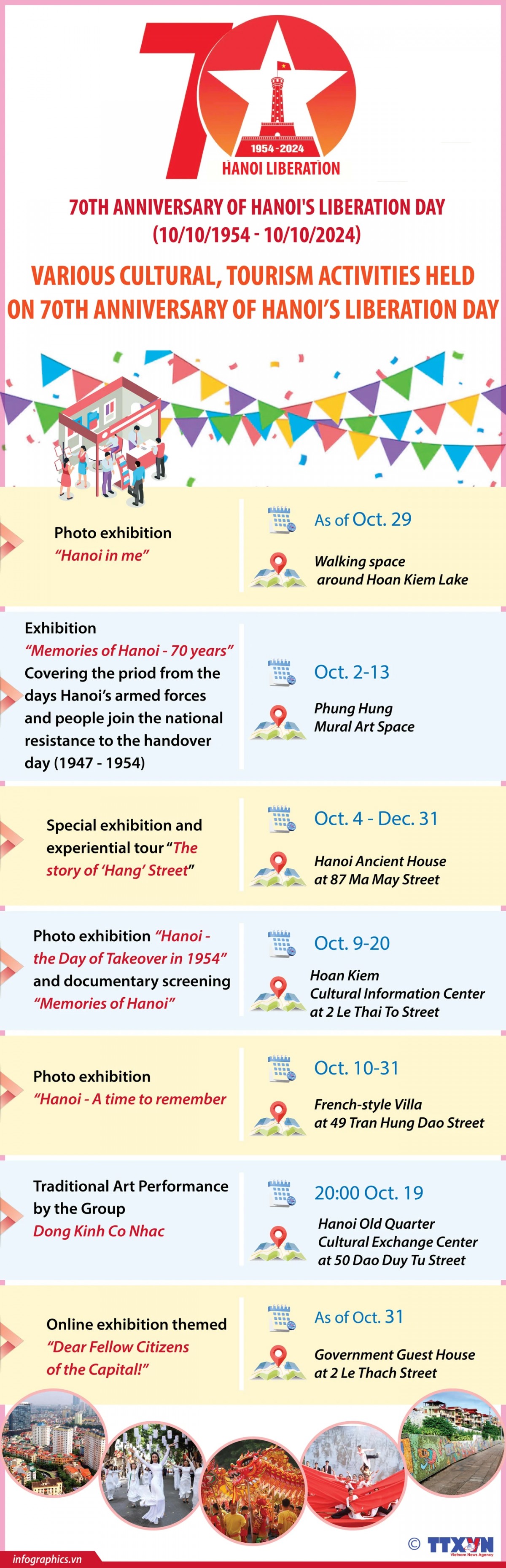 To celebrate the 70th anniversary of the Liberation of the Capital (October 10, 1954 - October 10, 2024), numerous activities and programs such as exhibitions, art performances, and experiential tourism will be organized at historical sites in the Old Quarter of Hanoi in the coming days.