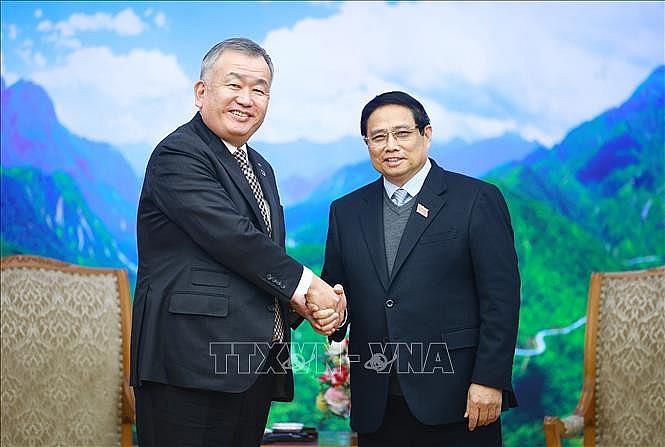 | Prime Minister Pham Minh Chinh (R) and Executive Officer and President of Yamato Holdings Nagao Yutaka at their meeting in Hanoi on February 17. (Photo: VNA) |