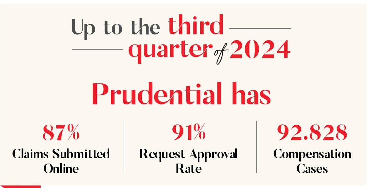Up to the third quarter of 2024, Prudential has recorded 87 percent of claims submitted online. In which, 92.828 compensation cases were processed, resulting in an impressive 91 percent approval rate for insurance claims. This means that for every 10 claims submitted, 9 are approved for payout.