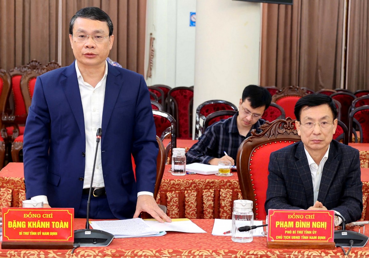 Secretary of the Nam Dinh Provincial Party Committee Dang Khanh Toan addressing the session |