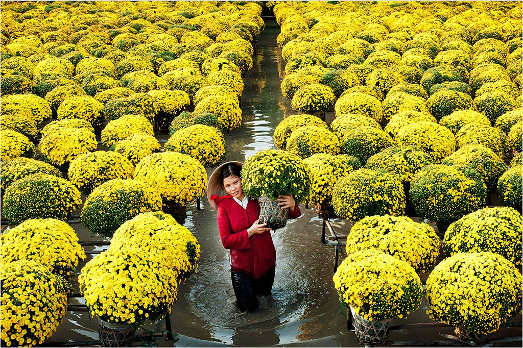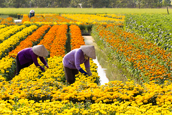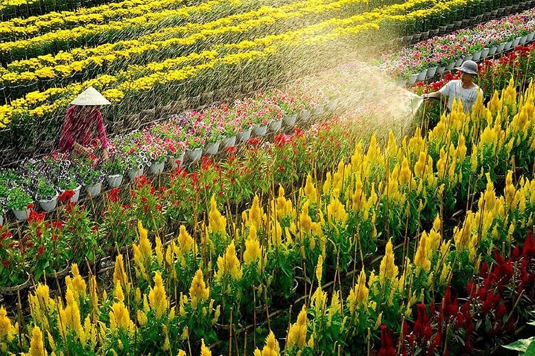 A unique feature of Sa Dec is that villagers grow flowers all year round on shelves built above water. Farmers, therefore, have to wear boots or use boats when they take care or harvest the plants.