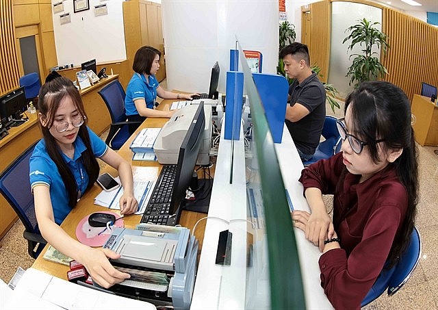 | Banking transactions at BAOVIET Bank.— VNA/VNS Photo |