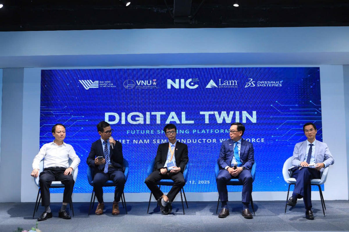 In this global context, Vietnam aims to become a vital link in the semiconductor value chain. To support the goal of developing 50,000 skilled semiconductor professionals by 2030, the National Innovation Center (NIC) under the Ministry of Planning and Investment, in collaboration with Vietnam National University in Hanoi and Ho Chi Minh City, as well as tech corporations Lam Research (USA) and Dassault Systèmes (France), organized the “Digital Twin – Shaping the Future of Vietnam’s Semiconductor Industry” forum on June 12–13.