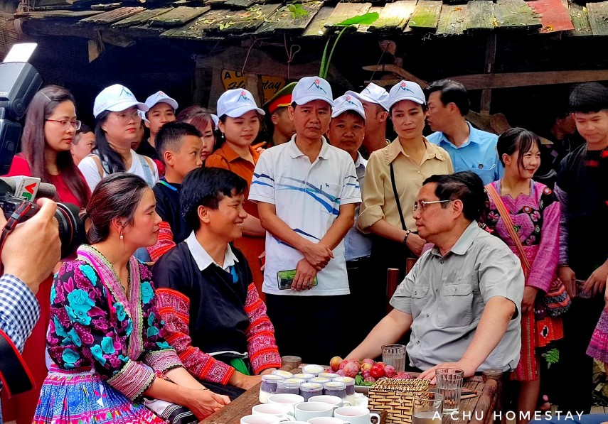 Prime Minister Pham Minh Chinh speaks with Trang A Chu and his wife at their homestay |