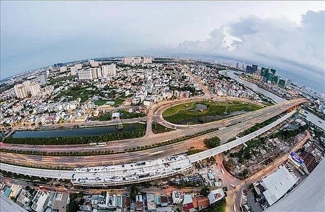| A view of HCM City's District 2 with Hanoi Highway and Metro Line 1 Ben Thanh - Suoi Tien. District 2 is undergoing development to emerge as a financial hub. (Photo: VNA) |