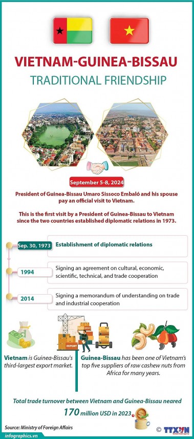 This visit, made at the invitation of General Secretary of the Communist Party of Vietnam and President To Lam and his spouse, marks the first time a President of Guinea-Bissau has visited Vietnam since the two countries established diplomatic relations in 1973.