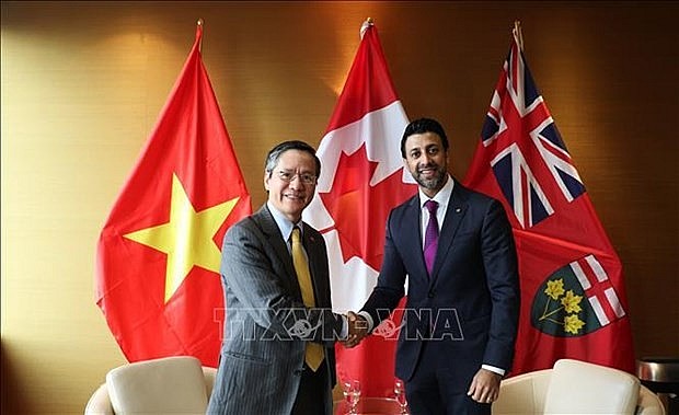 Vietnamese Ambassador to Canada Pham Vinh Quang and Canadian Parliamentary Secretary to the Minister of Export Promotion, International Trade and Economic Development Maninder Sidhu. (Photo: VNA) |