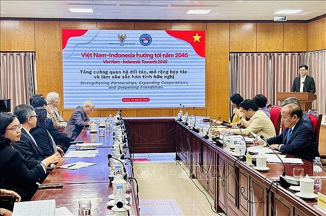 | The seminar is held in Hanoi on March 27 with theme "Vietnam - Indonesia Towards 2045: Strengthening Partnership, Expanding Cooperation, and Deepening Friendship". (Photo: VNA) |