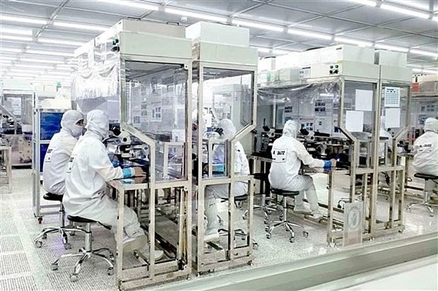 | Workers at a semiconductor factory located in HCM City. (Photo: VNA) |