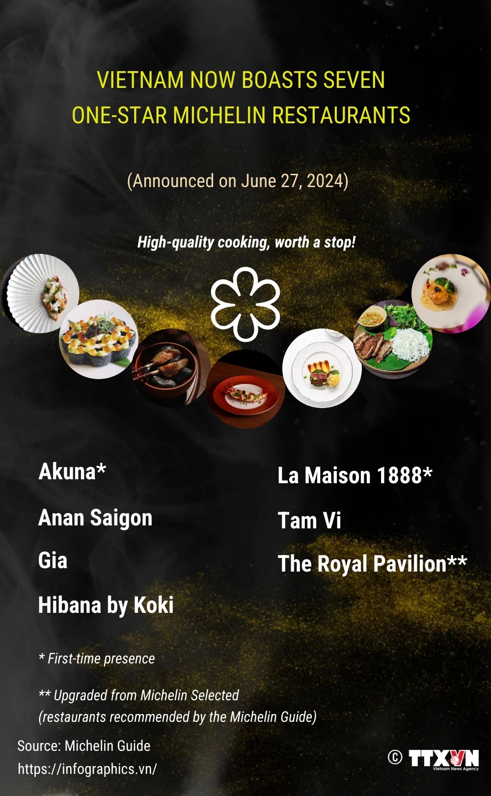 Vietnam has added three more Michelin-starred restaurants, bringing the total to seven.
