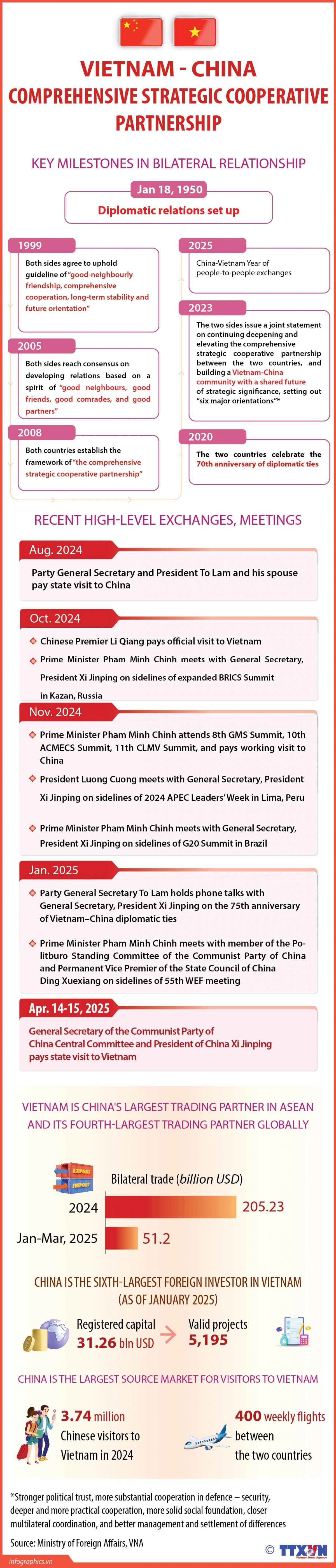 General Secretary of the Communist Party of China Central Committee and President of China Xi Jinping is paying a State visit to Vietnam from April 14-15. This marks his fourth State visit to Vietnam as General Secretary and President of China, and his second visit within the same term. The visit coincides with the 75th anniversary of diplomatic relations between the two countries. It aims to strengthen the Vietnam-China Comprehensive Strategic Cooperative Partnership and elevate bilateral ties to a new height.